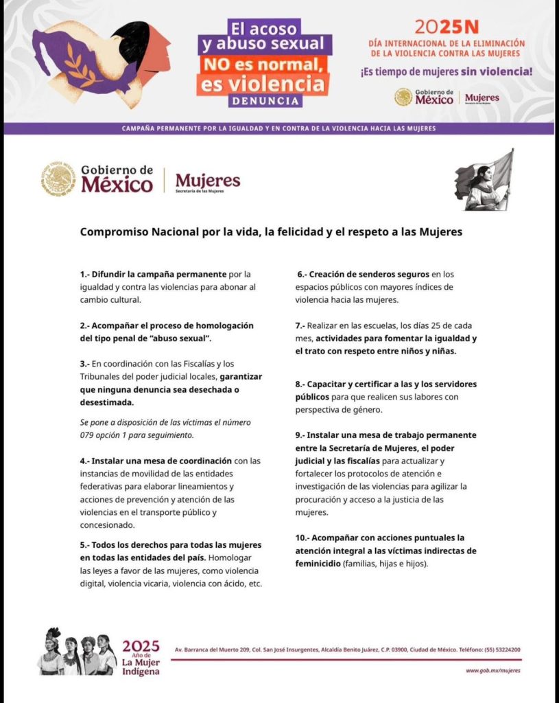 En el marco del Día Internacional para la Eliminación de la Violencia contra las Mujeres, y durante un enlace a la conferencia matutina encabezada por la presidenta Claudia Sheinbaum Pardo, el gobernador Eduardo Ramírez Aguilar reafirmó que Chiapas se suma al Compromiso Nacional por la Vida, la Felicidad y el Respeto a las Mujeres, subrayando que para el gobierno de la Nueva ERA la agenda de las mujeres es una prioridad.