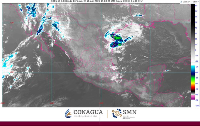 Para hoy, una vaguada en altura y la corriente en chorro subtropical, propiciarán rachas fuertes de viento, descenso de temperatura y lluvias en el noroeste del territorio nacional. Una línea seca se establecerá en el noreste de México, lo que generará lluvias puntuales fuertes con la posible formación de torbellinos en la zona fronteriza de Chihuahua, Coahuila, Nuevo León y Tamaulipas. Canales de baja presión en el interior del país, en combinación con inestabilidad en altura y con el ingreso de aire húmedo del océano Pacífico, golfo de México y mar Caribe, generarán chubascos y lluvias puntuales fuertes con descargas eléctricas y posible caída de granizo en el oriente, centro, sur y sureste del país, incluido el Valle de México y la península de Yucatán. Finalmente, prevalecerá la onda de calor en zonas de Sinaloa (sur), Nayarit (norte y sur), Jalisco (oeste, centro, sur y suroeste), Colima (este y sur), Michoacán (centro, sur y oeste), Guerrero (este, noroeste, centro y sur), Morelos (sur), Puebla (suroeste), Oaxaca (centro y sur) y Chiapas (centro y costa).