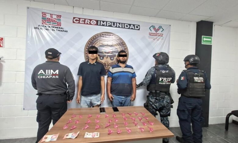 La Secretaría de Seguridad del Pueblo (SSP), a través de la Fuerza de Reacción Inmediata Pakal (FRIP) y Guardia Estatal Preventiva, en coordinación con la Agencia de Investigación e Inteligencia Ministerial (AIIM) de la Fiscalía General del Estado (FGE), lograron la detención de dos presuntos integrantes del Cártel de Sinaloa por delitos contra la salud en Tuxtla Gutiérrez.