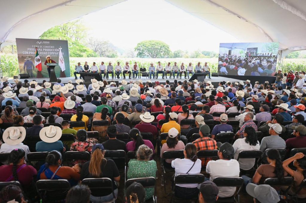 “Para mi gobierno es muy importante estar aquí con las productoras y los productores y darles a conocer que hemos asumido el compromiso de proteger la producción agrícola y ganadera ante el riesgo de catástrofes, así como anunciar estos créditos, que son de fácil acceso y representan un gran apoyo a las actividades que realizan en favor de la prosperidad del campo chiapaneco”, expresó. Además, convocó a las comunidades a no dar paso a la delincuencia y a mantener la unidad, al considerar que esto contribuye a la construcción de la paz.