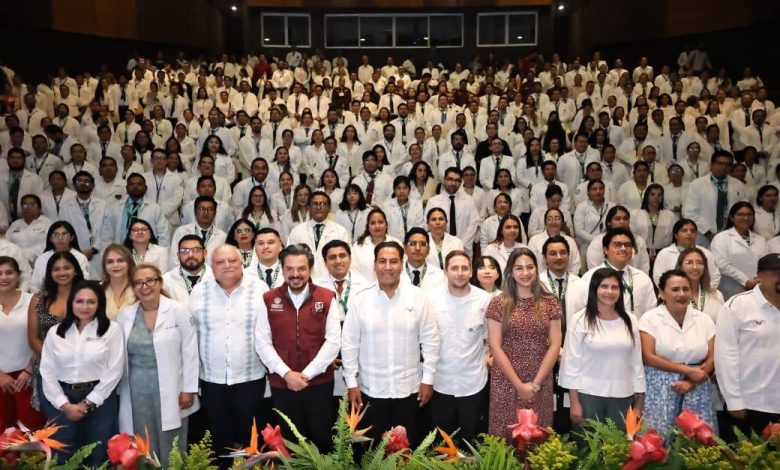 Por su parte, Zoé Robledo destacó el impulso para crecer en el número de becas para la formación de especialistas, que pasó de 5 mil 800 en 2019 a 9 mil 813 en el presente año, “entraron como residentes al R1 con el presidente López Obrador y egresaron para sumarse al Seguro Social en los tiempos de Claudia Sheinbaum Pardo, son parte de una nueva generación de que debe significar algo distinto para los servicios de salud”.