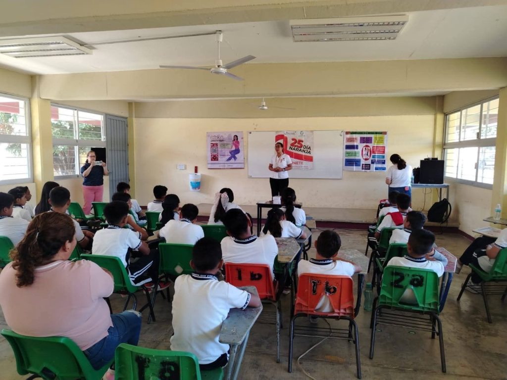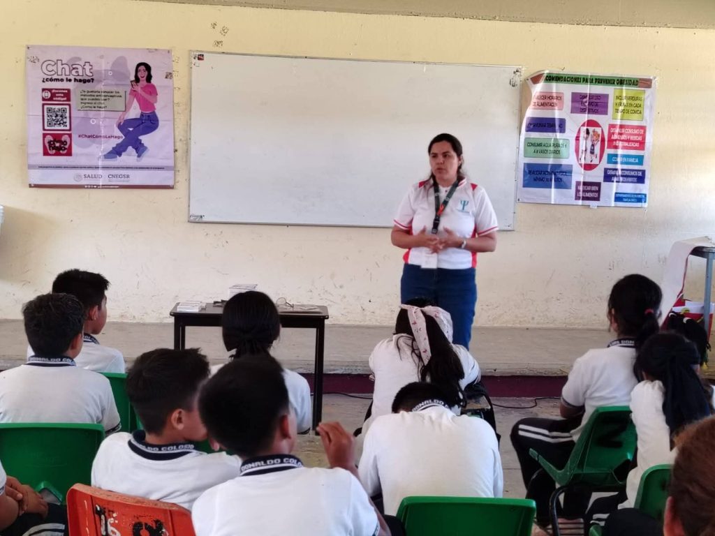 En coordinación con IMSS Bienestar de Tuxtla Chico, se explicó a los jóvenes de la Escuela Secundaria del Estado Luis Donaldo Colosio Murrieta en el ejido Sur de Guillen, el tema de prevención de embarazos en adolescentes, la responsabilidad de cuidar un bebé, además de los diferentes métodos de cuidado para prevenir embarazos.
