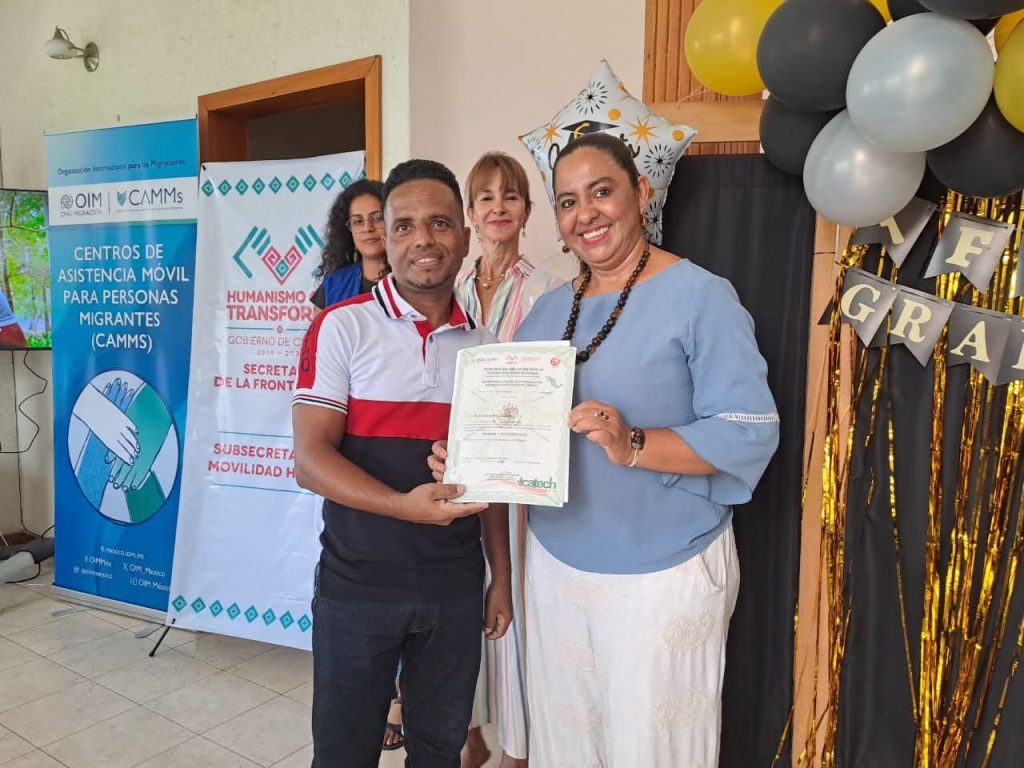 A través de la Subsecretaría de Movilidad Humana, a cargo de Eduardo Antonio Castillejos, esta iniciativa se llevó a cabo en coordinación con el Instituto de Capacitación y Vinculación Tecnológica del Estado de Chiapas (ICATECH) y la Organización Internacional para las Migraciones (OIM), sumando capacidades para brindar capacitación técnica, así como herramientas e insumos que fortalecen las habilidades para la empleabilidad.