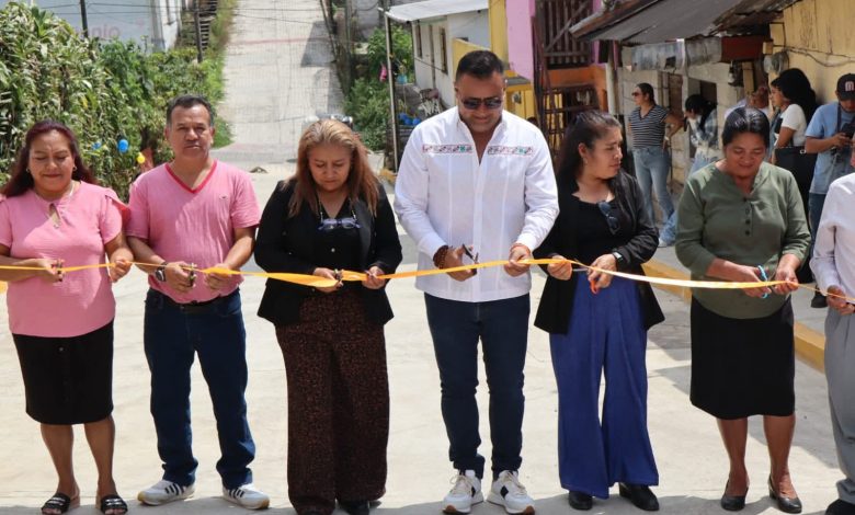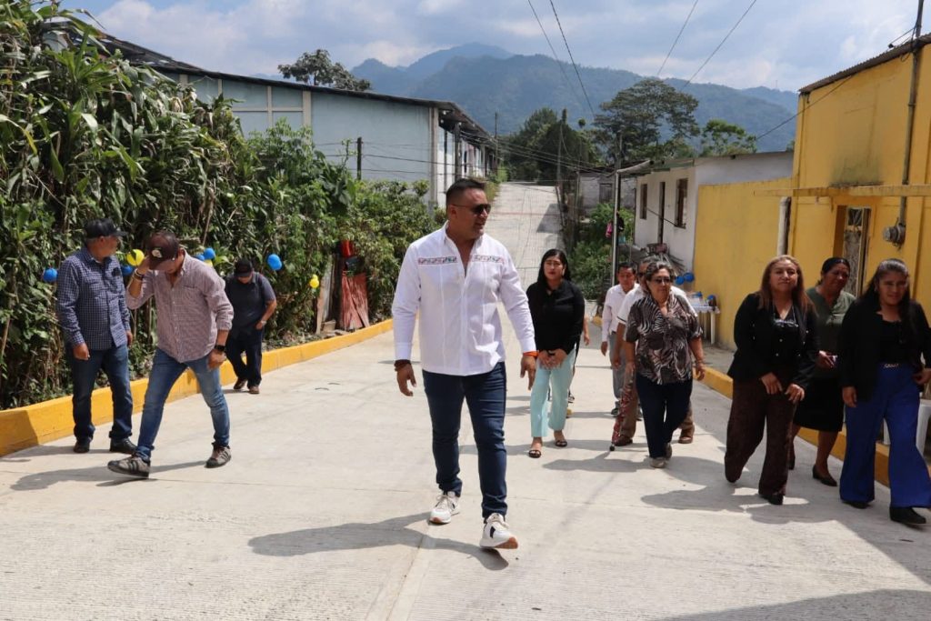 El alcalde Fabián Barrios de León inaugura pavimentación de calle con concreto hidráulico, rehabilitación de la red de drenaje sanitario, introducción de agua potable y suministro de tubería para dren pluvial en cabecera municipal.