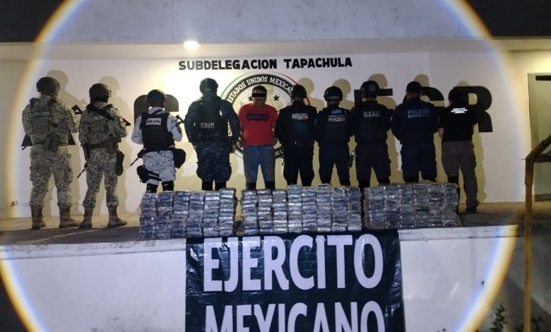 La Secretaría de Seguridad Pública y Protección Ciudadana Municipal de Tapachula informa que, derivado de labores de inteligencia e investigación de campo, mediante un operativo interinstitucional con la participación de fuerzas federales, estatales y municipales, se logró la detención de una persona en posesión de 202 paquetes de sustancia blanca con características propias de cocaína.