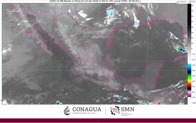 Para hoy, una línea seca que se extenderá sobre el noreste del territorio nacional, en interacción con la corriente en chorro subtropical, propiciarán rachas fuertes de viento y lluvias aisladas en zonas de Coahuila, Nuevo León y Tamaulipas. Por otra parte, un canal de baja presión y el ingreso de aire húmedo del océano Pacífico y golfo de México, generarán intervalos de chubascos en Chiapas, Oaxaca, Guerrero, Puebla y Veracruz; y lluvias aisladas en zonas de Tlaxcala, Morelos, Ciudad de México, Estado de México y Michoacán. La entrada de aire húmedo del mar Caribe, ocasionará lluvias aisladas en el norte y oriente de la península de Yucatán. Por otra parte, una circulación anticiclónica en niveles medios de la atmósfera mantendrá la onda de calor en Sinaloa (centro), Nuevo León (sur), Durango (noroeste), San Luis Potosí (centro y sur), Nayarit (sur), Jalisco (oeste y sur), Colima (este), Michoacán (sur y suroeste), Guanajuato (noreste), Querétaro (norte), Hidalgo (norte y este), Morelos (sur), Tamaulipas (suroeste), Veracruz (centro), Guerrero (noroeste, este y sur), Oaxaca (sur) y Chiapas (centro y noreste). Finalmente, el frente núm. 46 ha dejado de afectar a México.