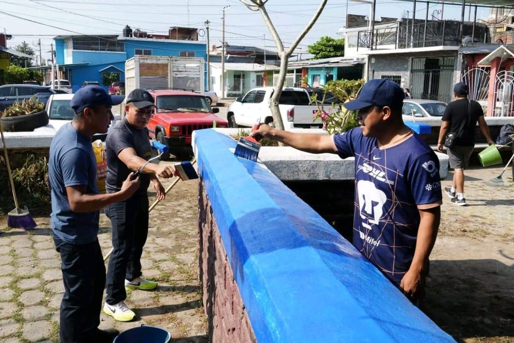 Durante la jornada se realizaron labores de limpieza integral y desbroce, con la eliminación de maleza y basura acumulada; poda estética y preventiva para mejorar la visibilidad y despejar áreas comunes; así como rehabilitación visual mediante aplicación de pintura y mejoramiento de la infraestructura del parque.