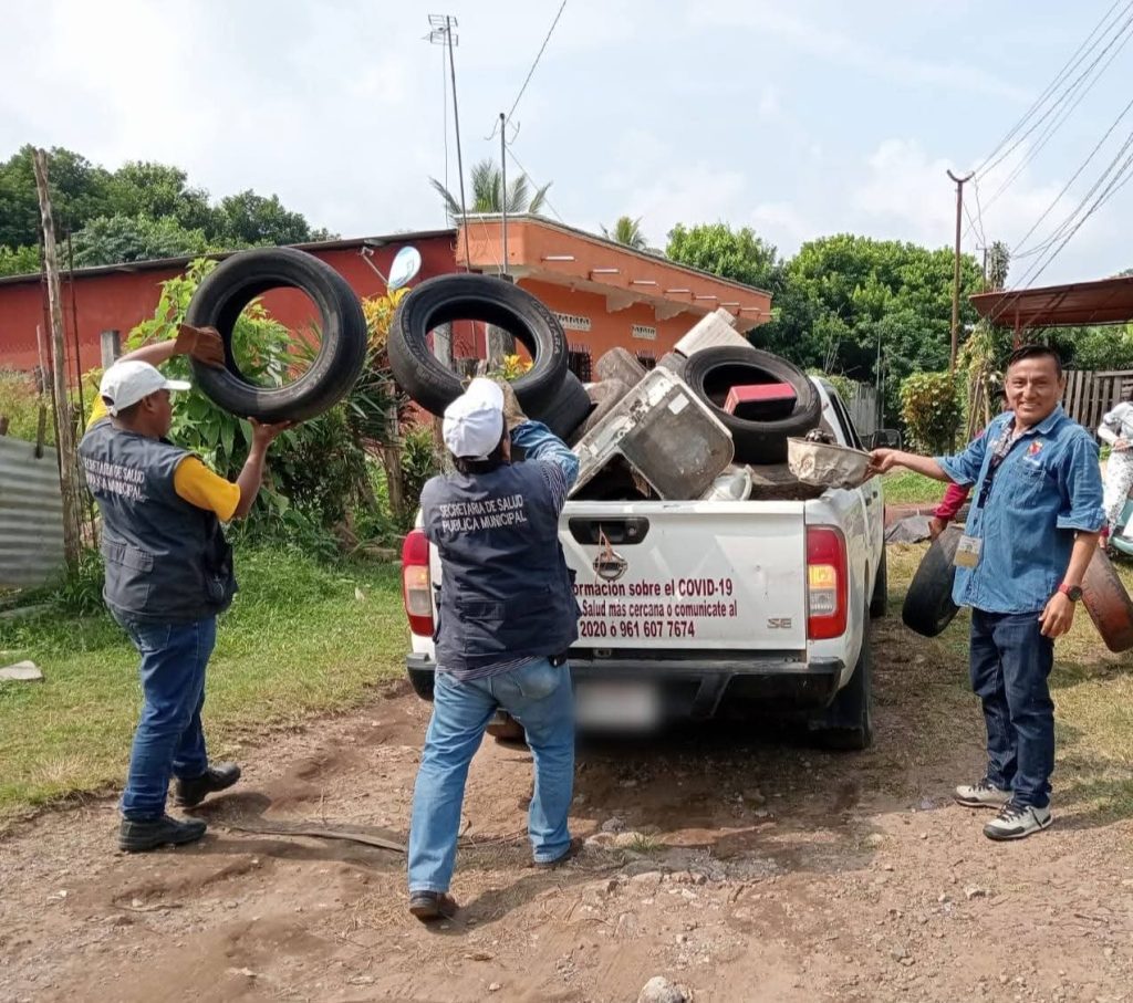 EL Ayuntamiento de Tapachula a través de la Secretaría de Salud Municipal en coordinación con la Jurisdicción Sanitaria número VII (JSNVII), recolectaron 12 toneladas de objetos en desuso, como parte del Operativo de Descacharrización y Nebulización, que se realizó en el ejido Felipe Carrillo Puerto, para prevenir la proliferación del mosco transmisor del dengue, zika y chikungunya.