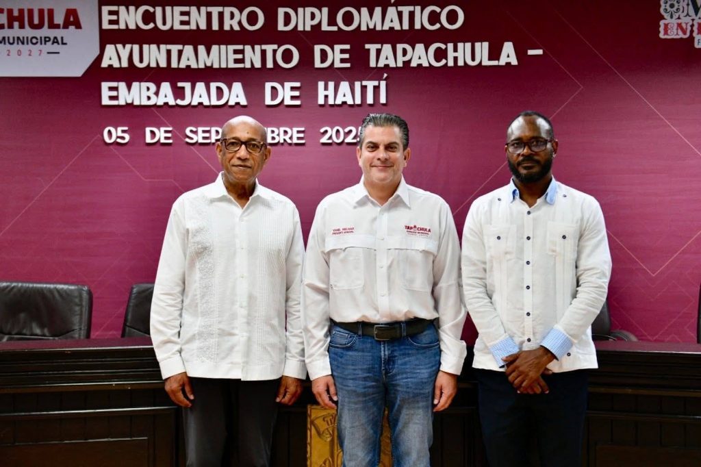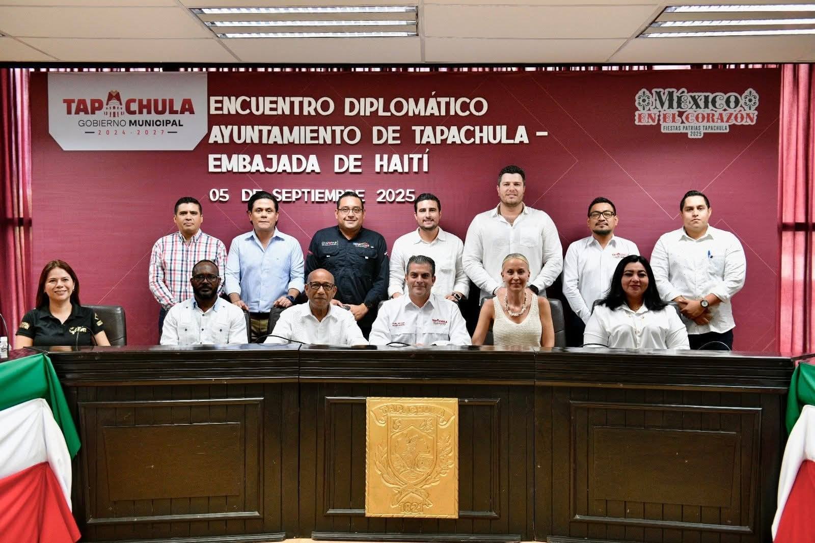 El presidente municipal de Tapachula, Yamil Melgar Bravo, recibió al Excelentísimo Embajador de la República de Haití, Hubbert Labee, con quien refrendó la agenda política y social para la atención a la población en contexto de movilidad de esa nación.