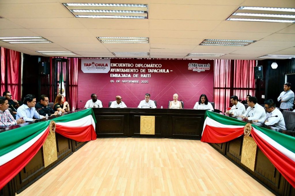 La recepción se realizó en la Sala de Cabildo de la presidencia municipal, donde el diplomático, por su parte, agradeció al pueblo de Tapachula la hospitalidad, apoyo y solidaridad para sus connacionales, haciendo énfasis en el trabajo que el gobierno municipal ha desarrollado durante este tiempo a través de diversas secretarías de la actual administración y del Sistema DIF.