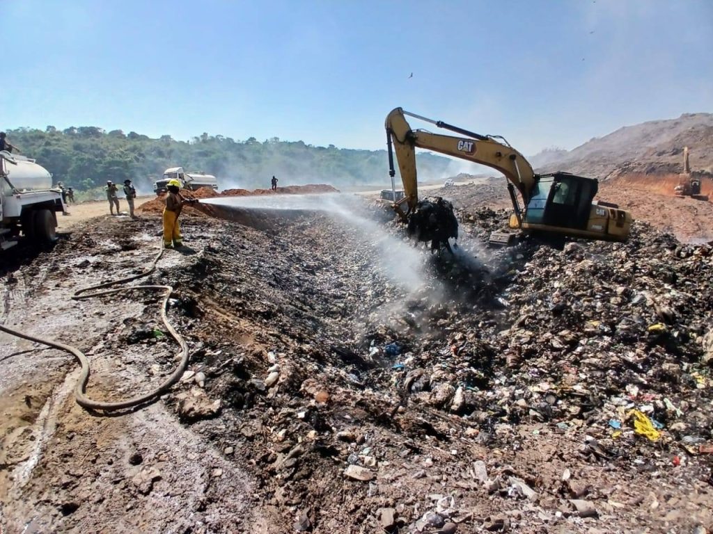 Destacó que de manera paralela a las labores de sofocamiento del incendio, se avanza en la habilitación de un área para recepción de residuos sólidos, con el objetivo de evitar acumulamientos en la zona urbana y minimizar riesgos a la población.