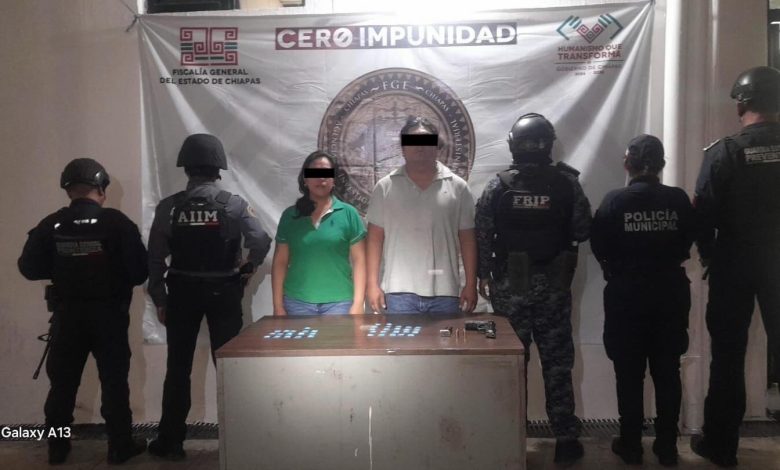 Las autoridades identificaron a los detenidos como Lenin “N” y Laura “N”, a quienes se les aseguraron 38 dosis de una sustancia con características similares al cristal, así como un arma corta tipo Beretta 92FS, calibre 9 milímetros, abastecida con un cargador y cuatro cartuchos útiles.