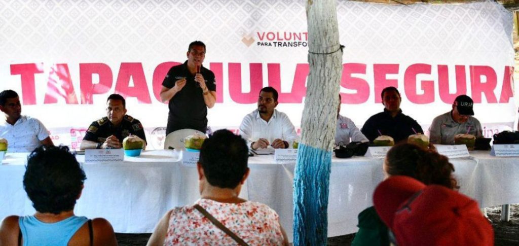 El presidente municipal de Tapachula, Yamil Melgar Bravo y el secretario de Seguridad del Pueblo del estado de Chiapas, Óscar Alberto Aparicio Avendaño, sostuvieron un encuentro con palaperos de Puerto Madero como parte de las acciones del programa Tapachula Segura.