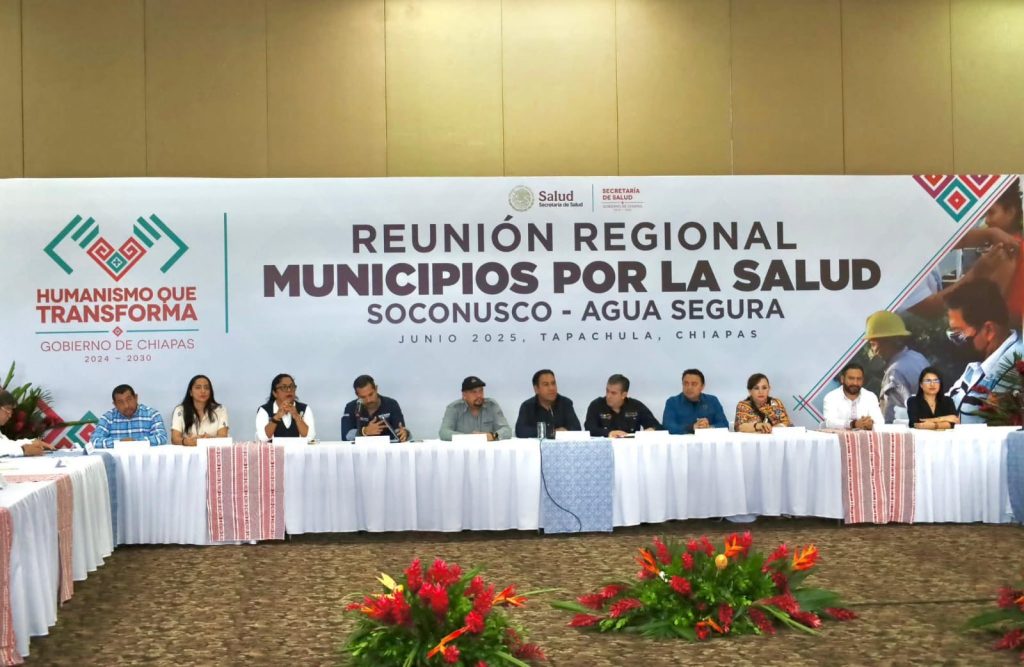 El presidente municipal de Unión Juárez, Fabián Barrios de León, participó en la Reunión Regional “Municipios por la Salud – Agua Segura”, celebrada en Tapachula, donde alcaldes, autoridades del sector salud y el gobernador, Eduardo Ramírez, coordinaron estrategias para fortalecer la atención médica y garantizar el acceso a agua segura para la población.