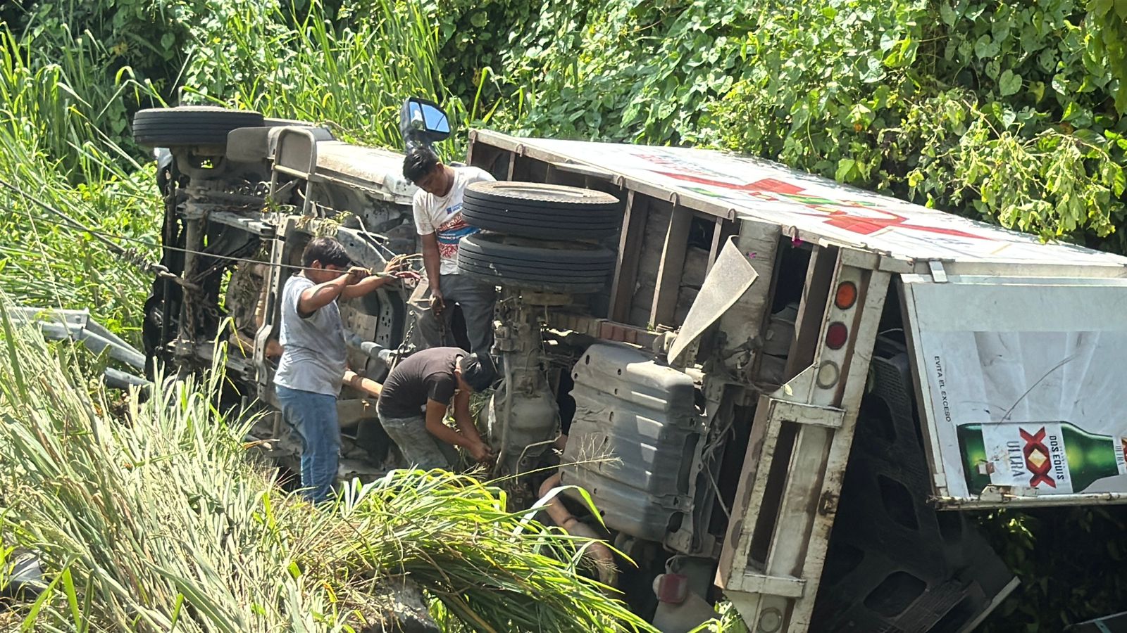 Tapachula, Chiapas, jueves 18 de septiembre de 2025. Alrededor de la 1:30 de la tarde, se registró un fuerte accidente sobre la carretera Tapachula–Puerto Madero, a unos 300 metros del Hospital General, cuando un camión cervecero sufrió una presunta falla mecánica.