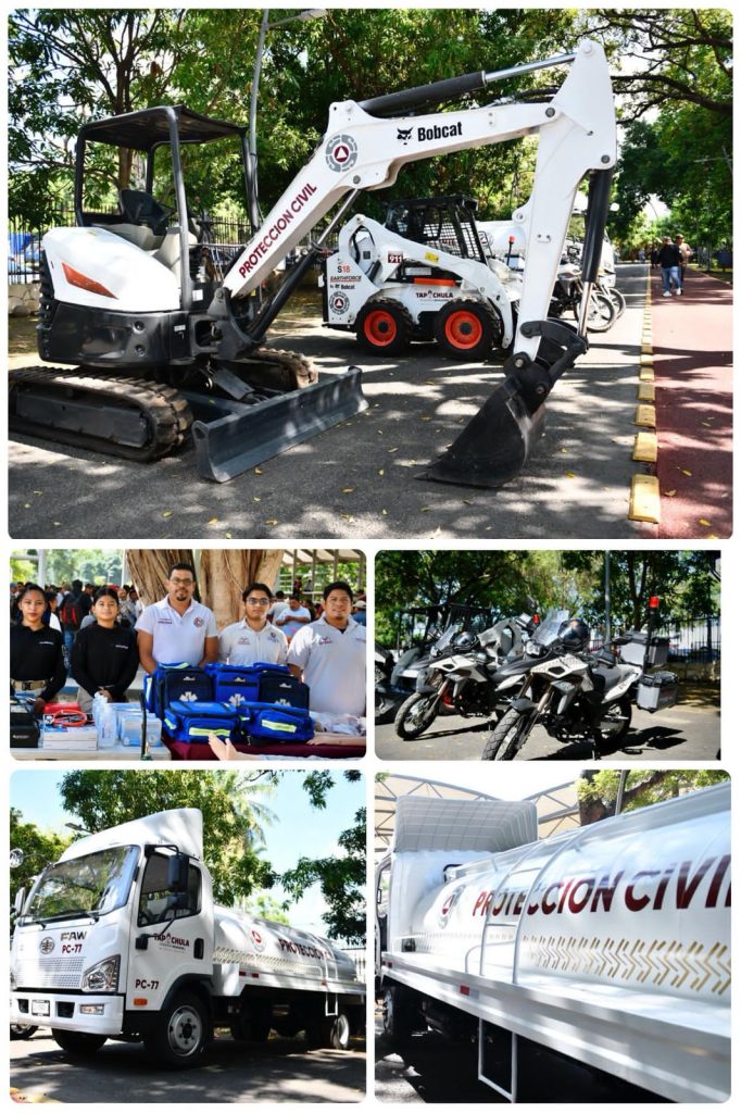 El equipamiento entregado permitirá responder de manera más eficaz ante lluvias, inundaciones, sismos, incendios y emergencias por accidentes. Entre lo entregado se incluyen uniformes y equipo de protección personal; herramientas para rescate y trabajo en alturas; material operativo, de iluminación, tecnológico, prehospitalario y de oficina; así como cinco camionetas RAM 1200, una pipa, un mini-cargador Bobcat, una mini-excavadora Bobcat y dos motocicletas Cross Country.